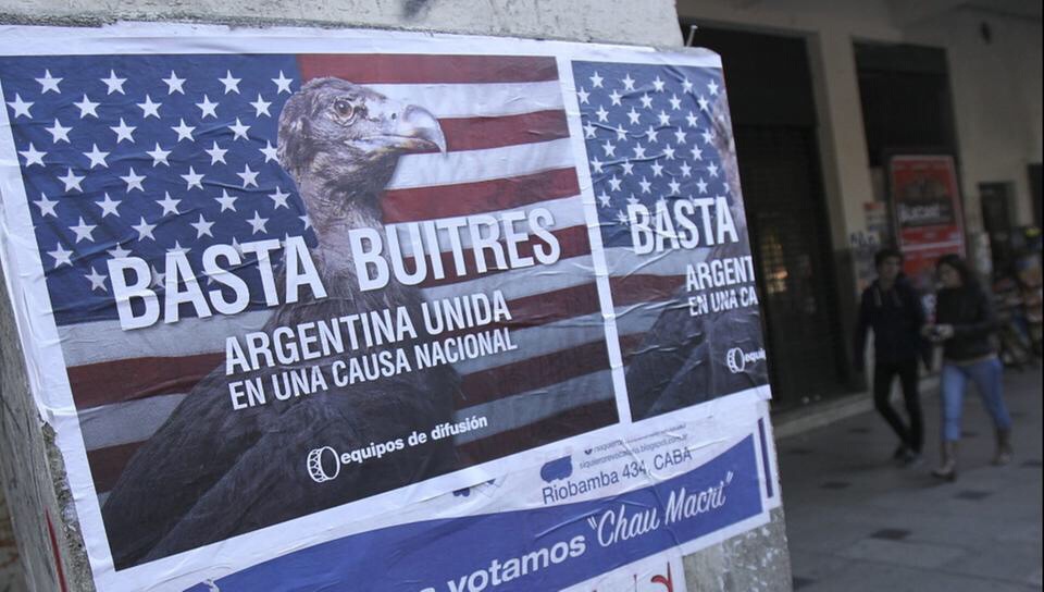 Gegen die “Geier”: Auf einem Plakat in Argentinien wird gegen US-Hedgefonds protestiert.