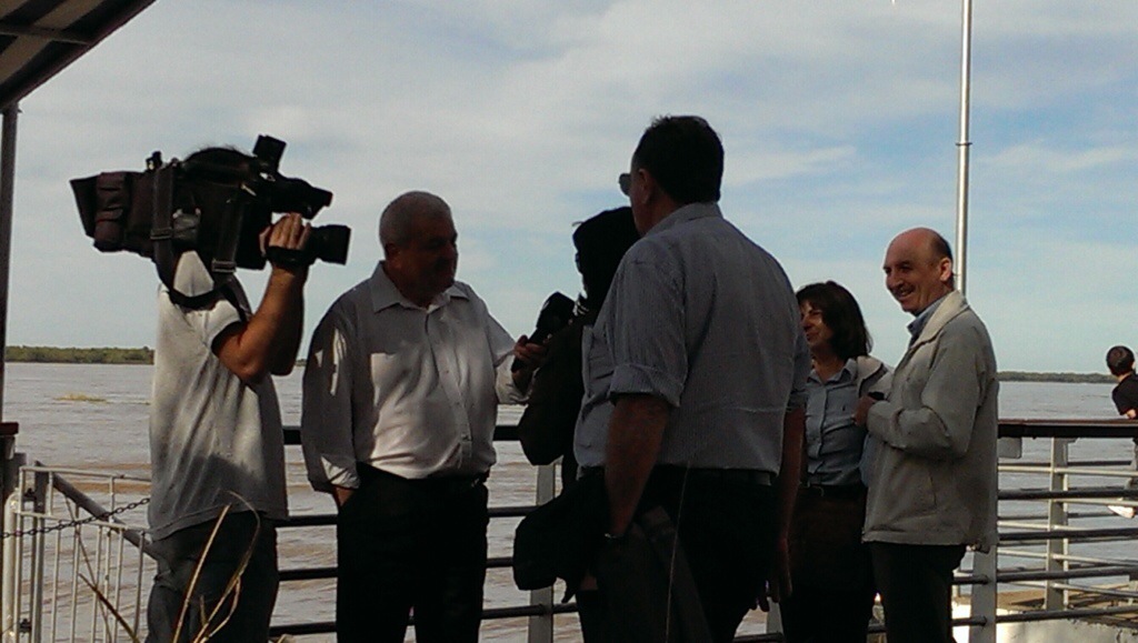 Fernsehinterview 1 Antwort Lokaler Sender interviewt Frau Boder vor malerischer Kulisse zum Austausch mit der deutschen Schule Rosario.