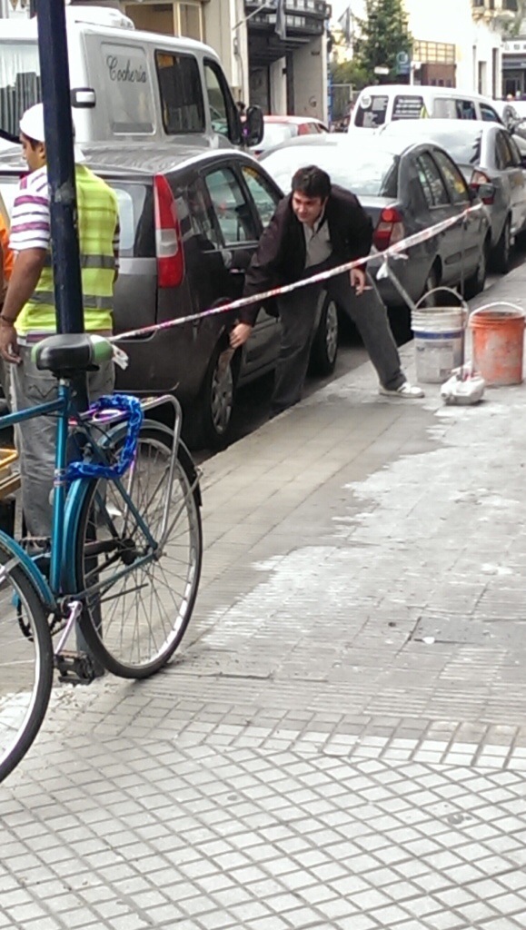 Heute ist uns zum ersten mal aufgefallen, dass es auch eine Art Instandhaltung gibt. Die hat es so gut gemeint, dass sie den Zement nicht nur auf den Bürgersteig, sondern auch ganz ambitioniert gleich noch auf ein parkendes Auto gekippt hat. Mit ein bisschen Wischen wird’s schon wieder